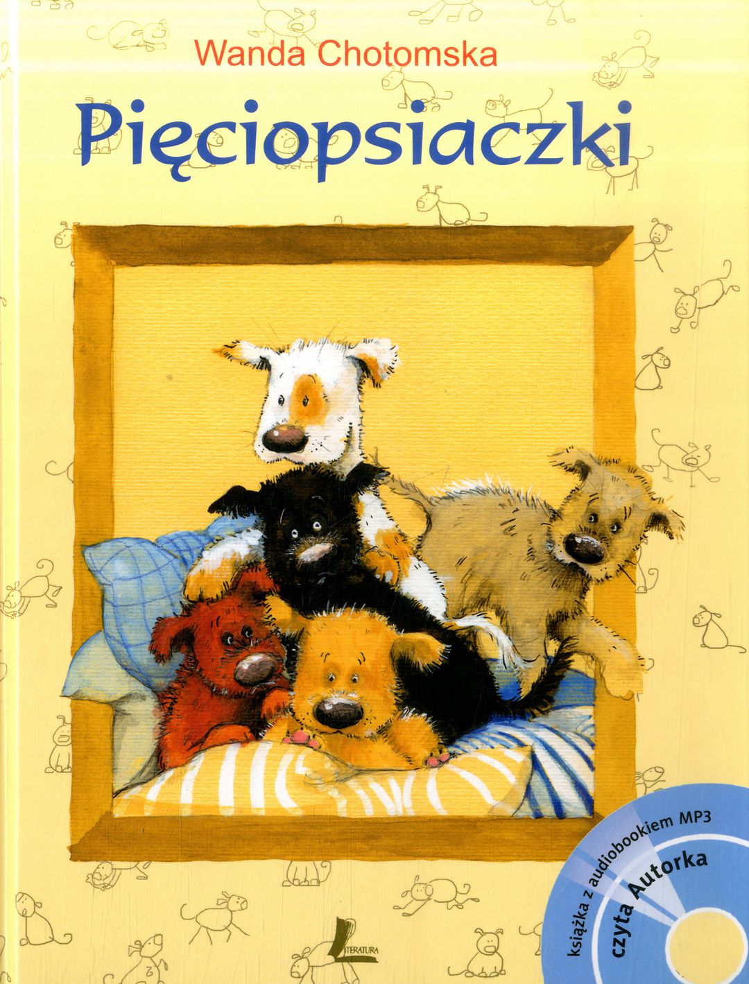 Pięciopsiaczki / Wanda Chotomska ; ilustrowała Aneta Krella-Moch. - Wydanie 19. - Łódź : Wydawnictwo Literatura, 2019. - 70, [2] strony : ilustracje (w tym kolorowe) ; 24 cm. + 1 płyta audio MP3.